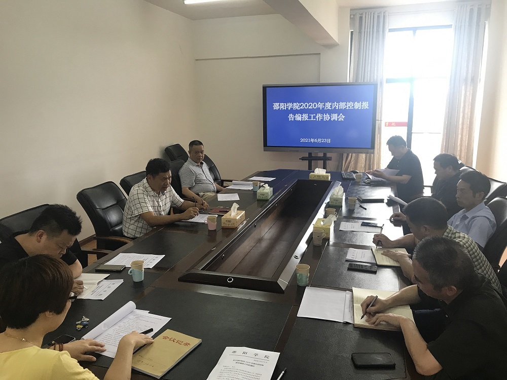 6月23日上午,由计划财务处牵头,邵阳学院2020年度内部控制报告编报工作协调会在第一办公楼419会议室召开。计划财务处处长彭跃社及学校各相关职能部门负责人参加会议。 彭跃社处长首先向各职能部门传达了《湖南省财政厅关于开展2020年度行政事业单位内部控制报告编报工作的通知》和《 关于做好我校2020年度内部控制报告编报工作的通知》的文件精神和工作要求,并按照任务分解表部署相关工作。围绕2020年度内部控制报告编报工作的指导标准和材料要求,计划财务处综合科科长陈健美进行了详细介绍和答疑。